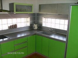 Смела комбинација на бои ,освежителна ,весела,....зелената боја делува смиривачко,и дава на самата кујна уникатен стил